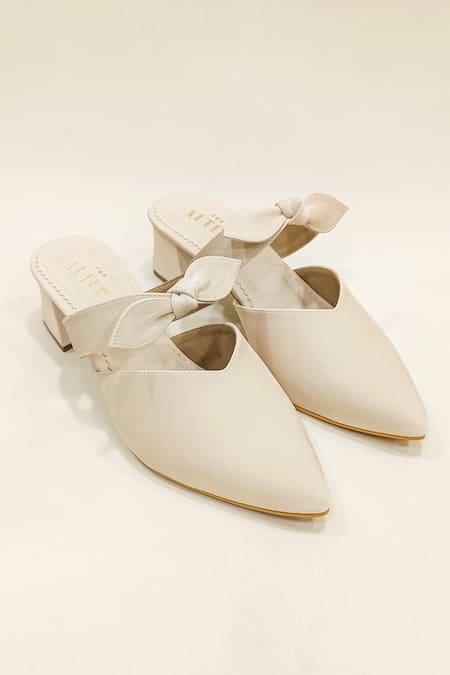 Front bow strap detail, Cushioned insole for comfort, Pointed toe design