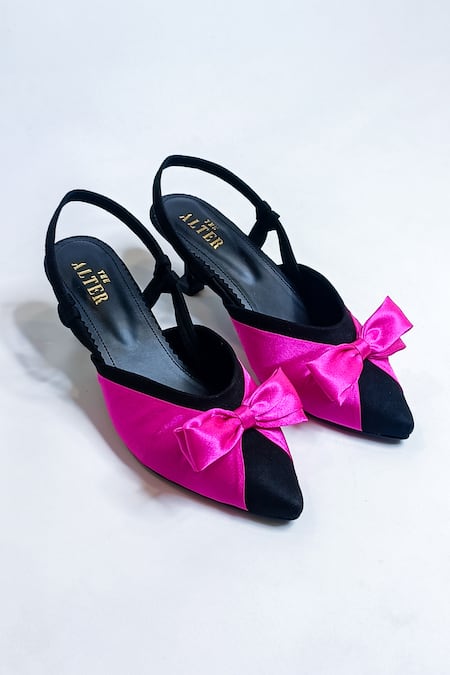 Hot pink pumps featuring a pointed toe design and a bow ornament