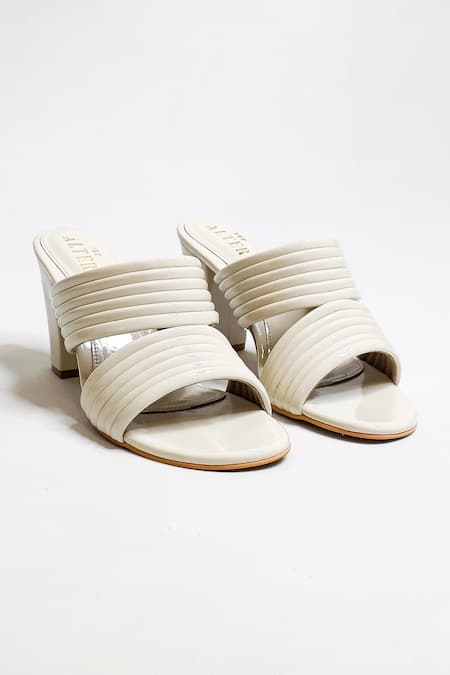 Ribbed detailing on the straps, Round toe design, 3.5-inch block heel
