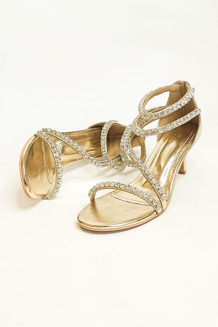 Gold Rhinestones Serena Embellished Strappy Kitten Heels