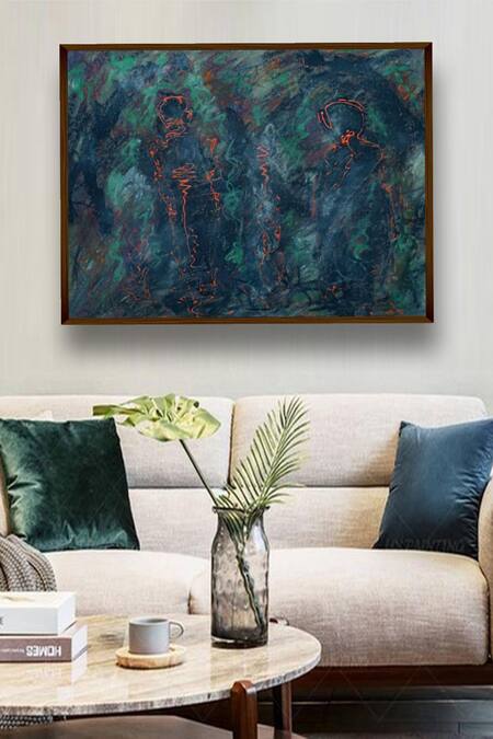 Multicolor rectangular-shaped handmade abstract painting on a canvas base.