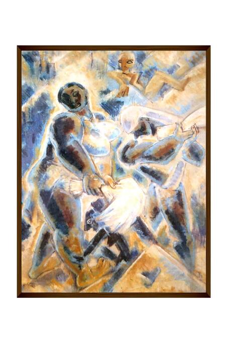 Multicolor rectangular-shaped handmade abstract human figurine painting in canvas base.