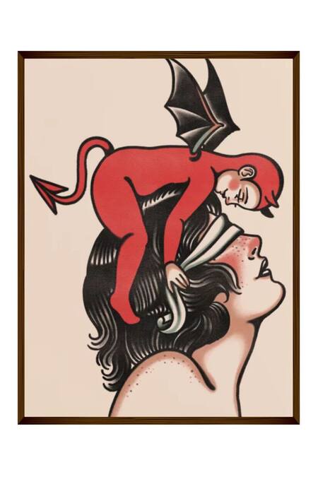Multi Color Canvas Handmade American Traditional Tattoo Painting