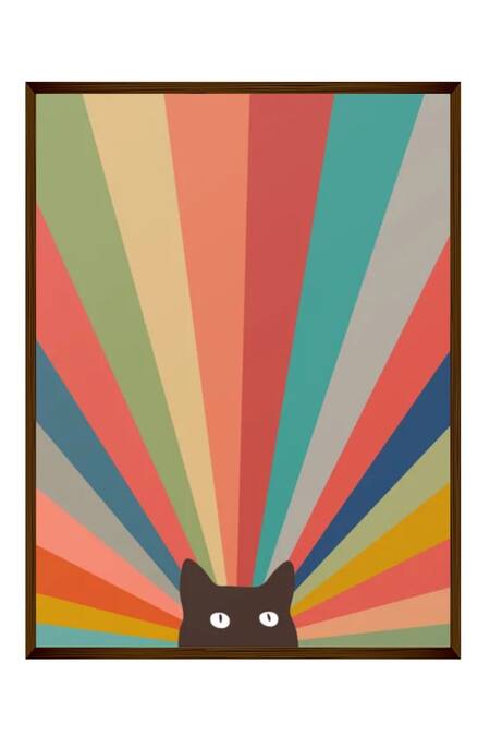 Multicolor rectangular-shaped cat landscape handmade painting in canvas base.