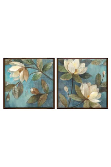 Multi Color Canvas Digital Print Floral Painting Set Of 2