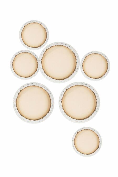 Multicolor round-shaped set of 7 handmade paintings with Pichwai design in canvas base.