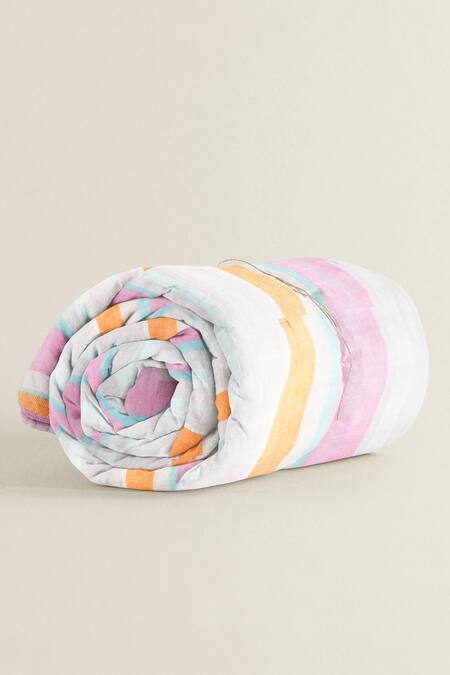 Pink Organic Cotton Print Stripe Junior Quilt