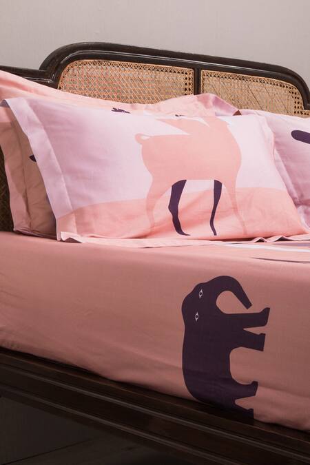 Pink 100% Cotton Printed The Basharat Animal Bedsheet Set