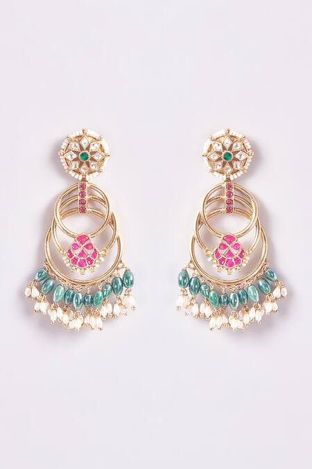 Gold Plated Stones, Pearls Designer Earrings With