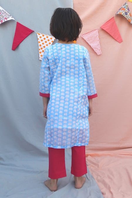 Buy_THE COTTON STAPLE_Blue Cotton Printed Kurta Set _Online_at_Aza_Fashions