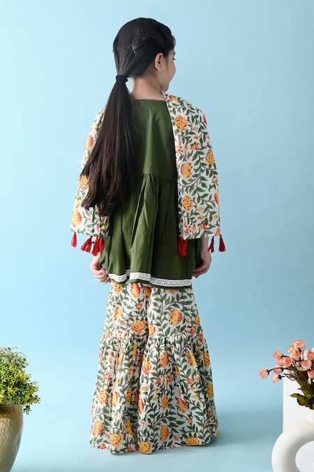 Buy_THE COTTON STAPLE_Green Cotton Tassels Tisha Kurta Sharara Set _Online_at_Aza_Fashions