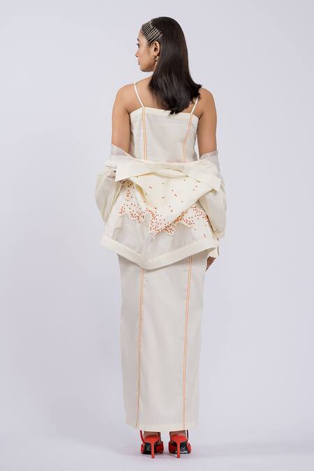 Off White Cotton Beads Collared Embroidered Sheer Jacket