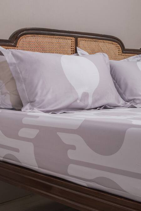 Cool grey cotton bedcover with sateen finish & all over monochrome polka dot drip pattern. Comes with matching monochrome set of 4 pillow cases.