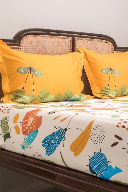 Green & multi color cotton bedsheet with sateen finish, all over contrast flora & fauna pattern. Comes with matching contrast set of 4 pillow cases.