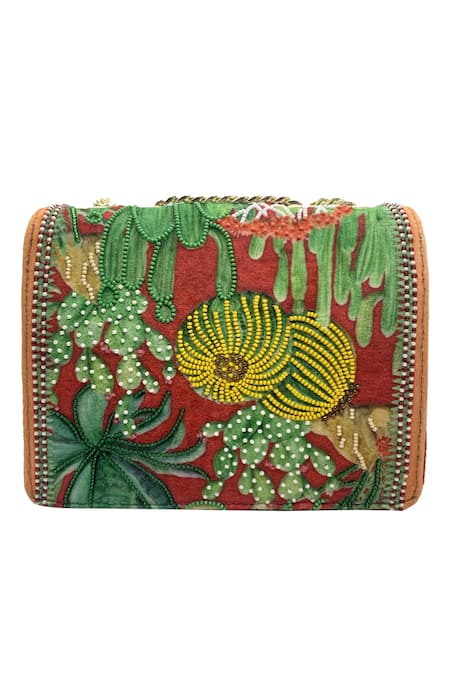 Chain detailing for added style, Intricate bead work embellishments, Cactus print design for a unique look