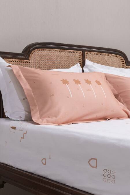 White golconda memories inspired print bedsheet. Comes along with 4 rectangle shaped palm trees print pillow cases.