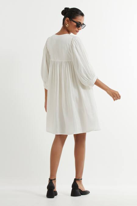 Front drawstring tie with tassel detail, Pleated detail for added texture, Flared silhouette for a flowing fit