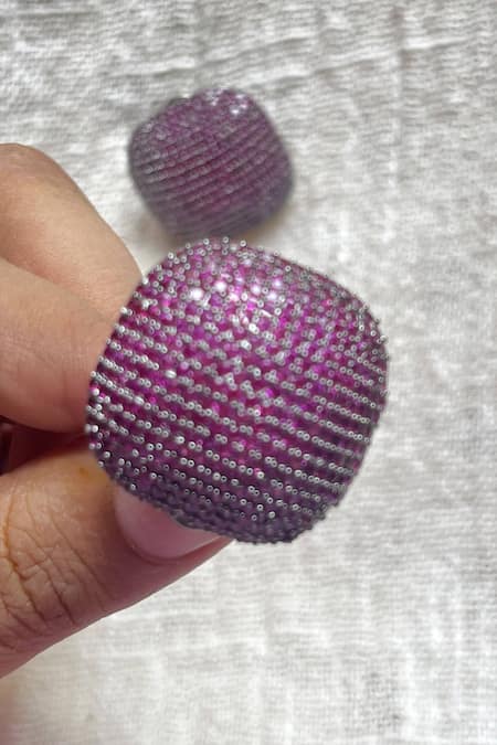 Square shaped design with curved corners, Embellished with pink crystals, Butterfly back closure