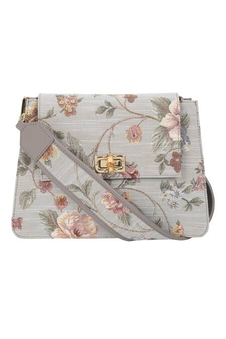 Grey Floral Pattern Heather Jacquard Shoulder Bag