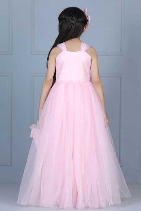 Buy_The Little Celebs_Pink Net, Satin Fabric Flowers 3d Floral Detail Flared Gown _Online_at_Aza_Fashions