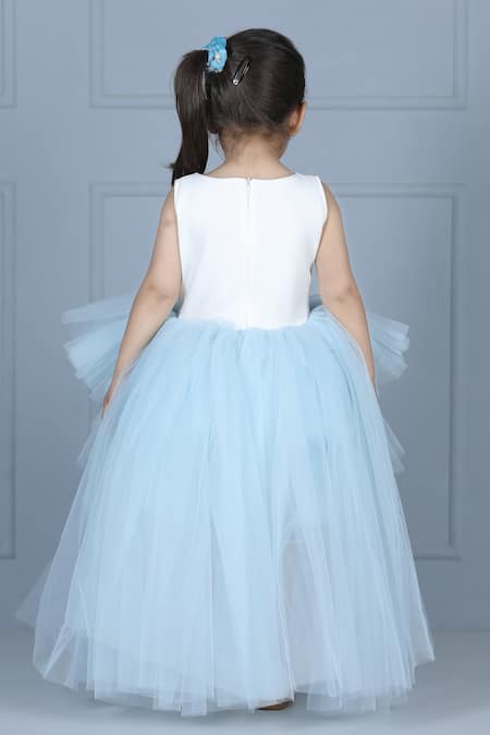 The Little Celebs_White Net, Crepe, Satin Sequins, Embroidery Elsa Bodice High-low Dress _Online_at_Aza_Fashions