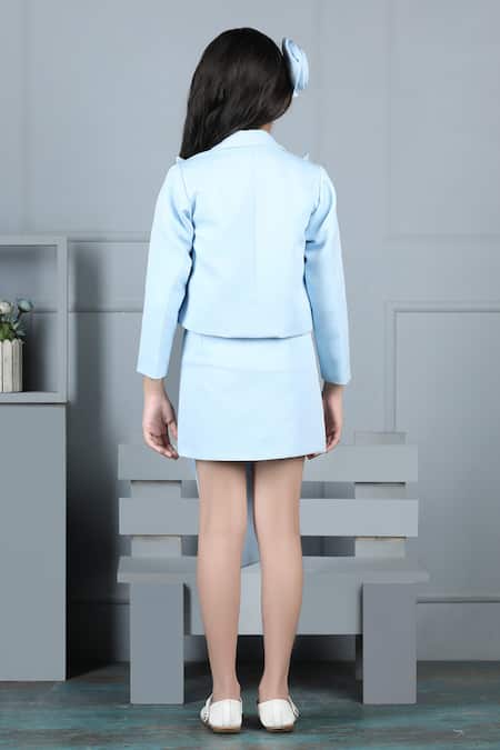 Buy_The Little Celebs_Blue Crepe Pearls, Rhinestones, Sequins Embellished Rosa Blazer And Skirt Set _Online_at_Aza_Fashions