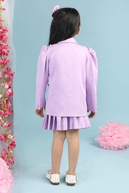 Buy_The Little Celebs_Purple Crepe Pearls Lilac Bow Embellished Blazer And Skirt Set _Online_at_Aza_Fashions
