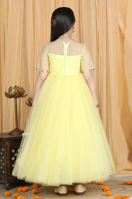 Buy_The Little Celebs_Yellow Net, Satin Embroidery Shell Anarkali Dress _Online_at_Aza_Fashions