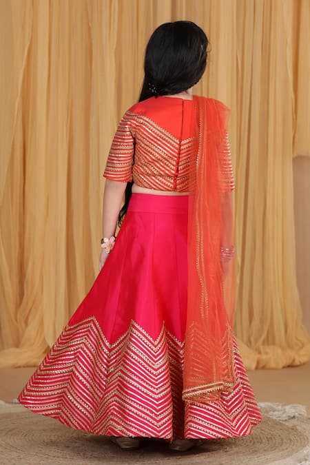 Buy_The Little Celebs_Pink Silk, Net, Crepe Gota Patti Blouse Lehenga Set _Online_at_Aza_Fashions