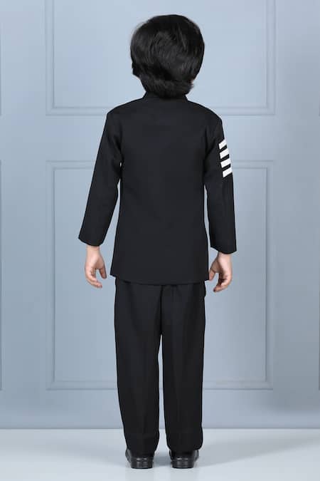 Buy_The Little Celebs_Black Crepe, Satin Solid Bandhgala Set _at_Aza_Fashions