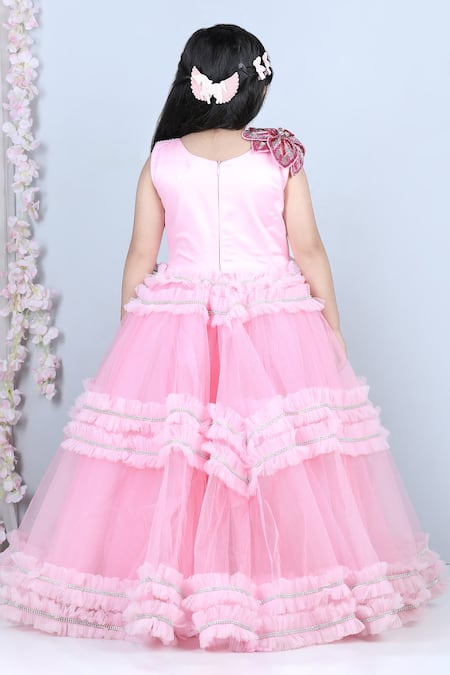 Buy_The Little Celebs_Pink Net, Satin Embroidery, Stones Swarovski Placket Dress _Online_at_Aza_Fashions