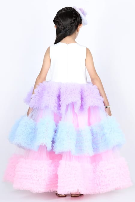 Buy_The Little Celebs_Multi Color Net, Satin, Lycra Embroidery Unicorn Ruffle Layered Dress _at_Aza_Fashions