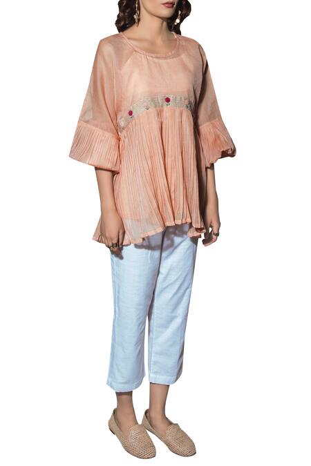 Flared sleeves, Knife pleats, Note:, Pants & inner worn by the model is not for sale