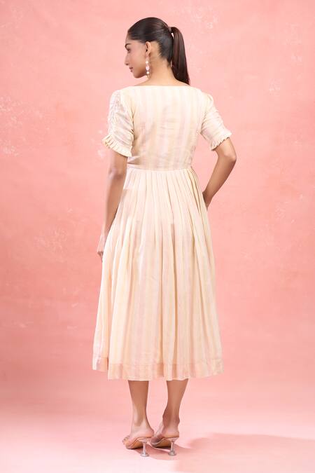 Multi Color Cotton, Silk Embroidery Square Neck Pastel Yellow Hand Midi Dress