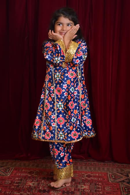 Buy_The Plum Bum_Blue Velvet Mirrors Floral Mosaic Print Kurta With Salwar _at_Aza_Fashions