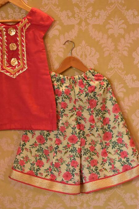 Buy_The Plum Bum_Beige Cotton, Silk, Kota Doria, Net Sequins, Lace Printed Palazzo And Kurta Set _at_Aza_Fashions