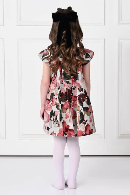 Multi Color Jacquard, Linen Cherry Print Flared Dress