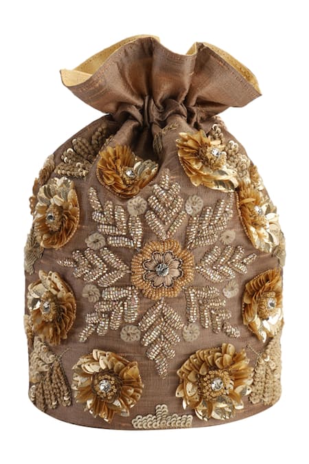 The Purple Sack_Brown Embroidery Hand Potli Bag _Online_at_Aza_Fashions