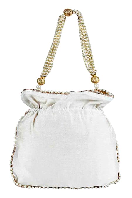 Buy_The Purple Sack_White Embroidery, Beads Hand Potli Bag _Online_at_Aza_Fashions