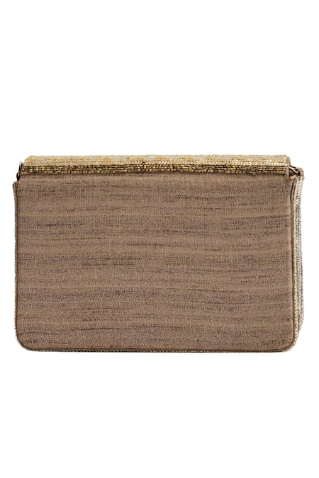 Buy_The Purple Sack_Brown Embroidery, Sequins Flap Clutch With Sling _at_Aza_Fashions