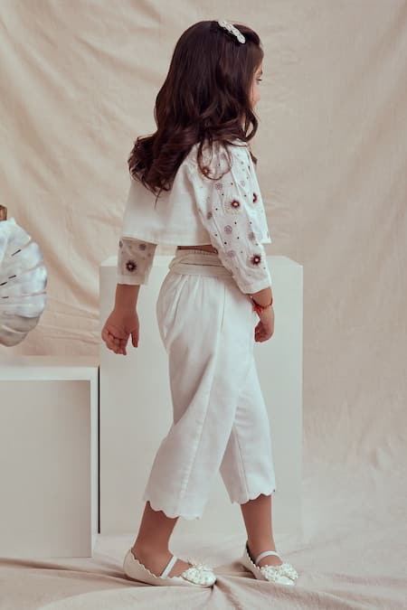 White Linen, Cotton Embroidery, Cut Work Maria Crop Jacket And Pant Set