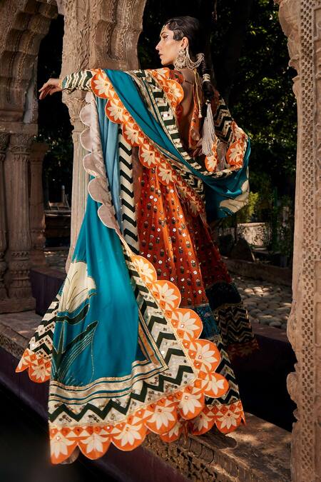 Multicolor upada silk anarkali with floral, chevron print & gota, sequin embellishment. Paired with printed dupatta.