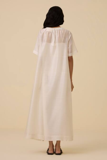 White Chanderi Embroidery Round Neck Cersei Paisley Midi Dress