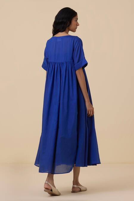 Blue Cotton, Silk Boat Neck Latifa Dress