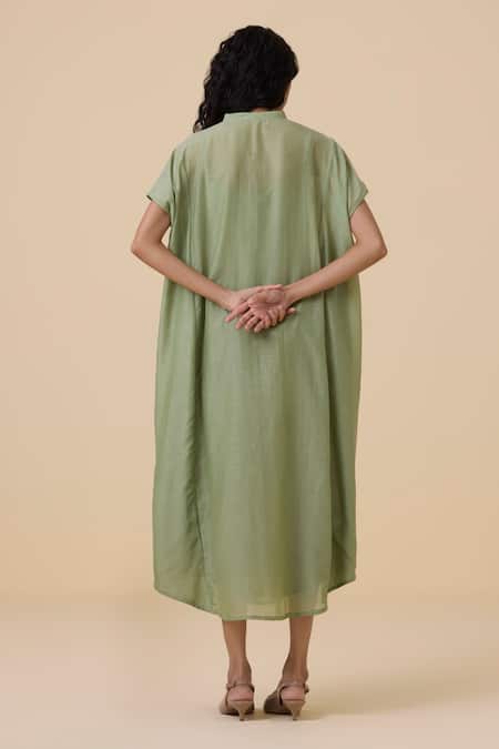 Green Cotton, Silk V-neck Meer Kaftan Dress