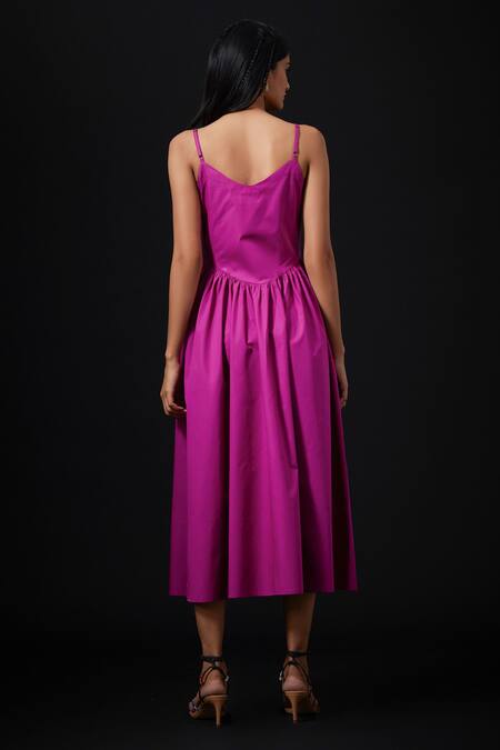 Gulaab purple solid midi dress featuring gather details along the waistline