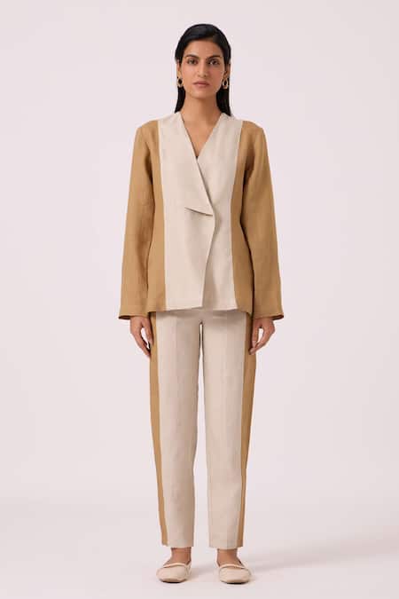 Beige Linen Tamara Panelled Pant
