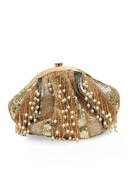 Buy_The Tan Clan_Gold Sequins, Pearls Ava Batua Bag _Online_at_Aza_Fashions
