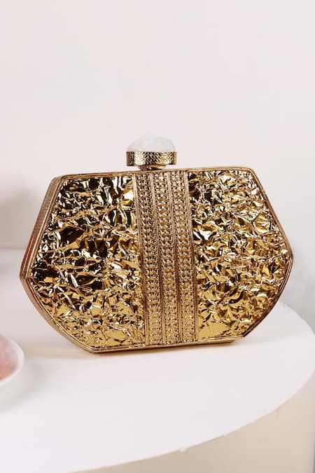 Buy_The Tan Clan_Gold Stones Demi Brass Clutch _Online_at_Aza_Fashions