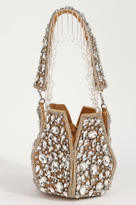 Buy_The Tan Clan_Gold Embellished Jhalak Crystal Potli Bag With Handle _Online_at_Aza_Fashions
